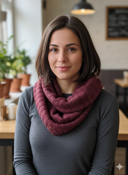 Cuello infinito, de punto trenzado largo para dar 2 vueltas.