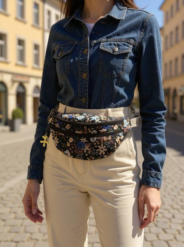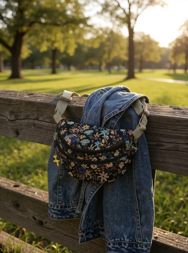 Riñonera micropana estampada, interior en seersucker Vichy.