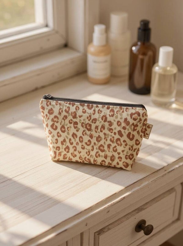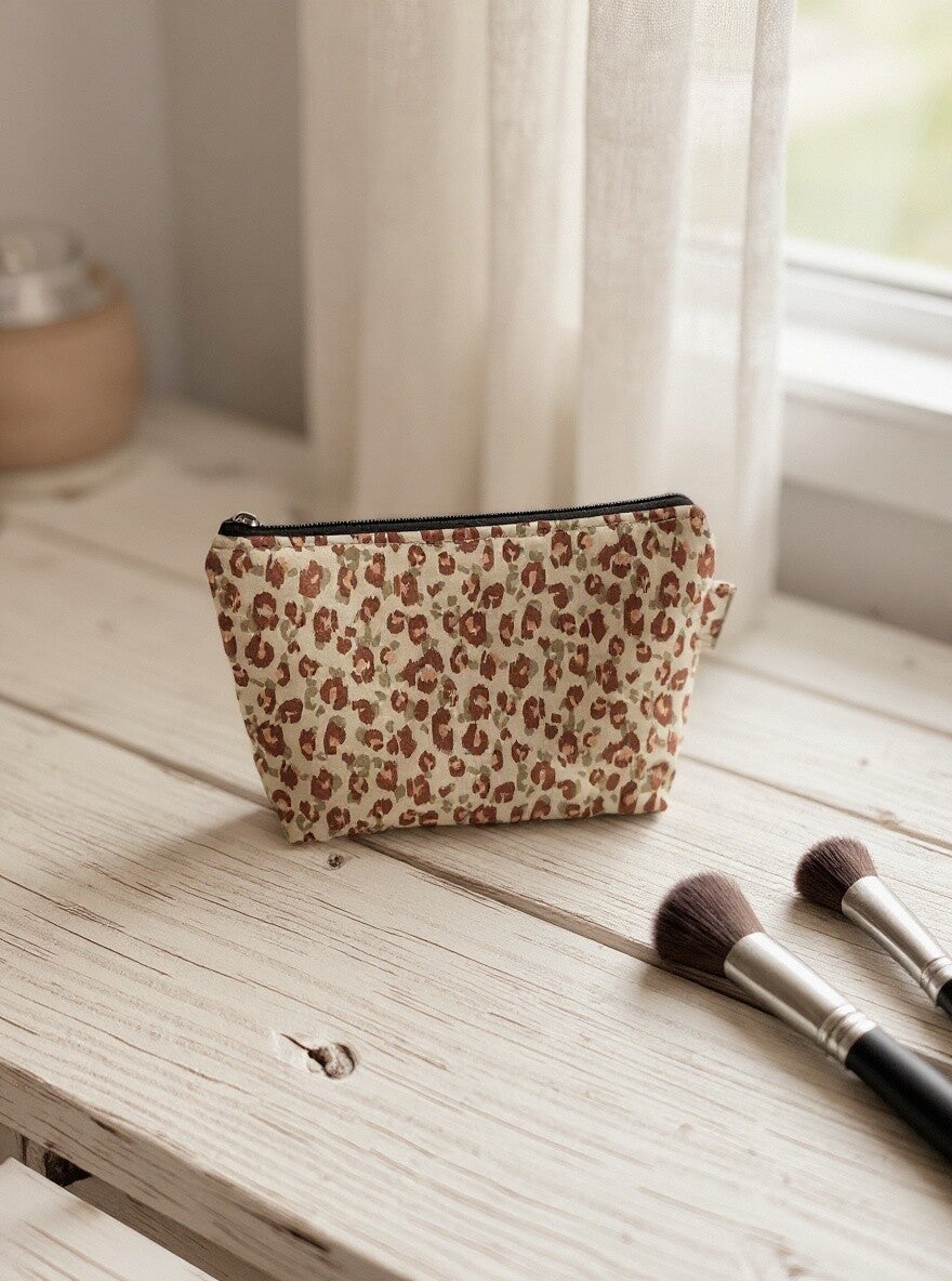 Neceser estmpado de animalprint, combinado con telas de algodón 100% con certificado OEKO TEX.