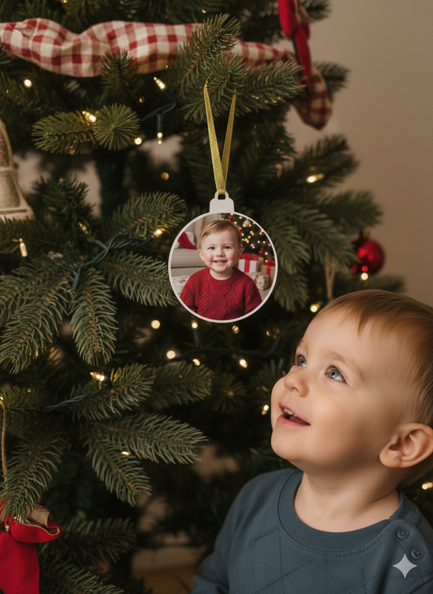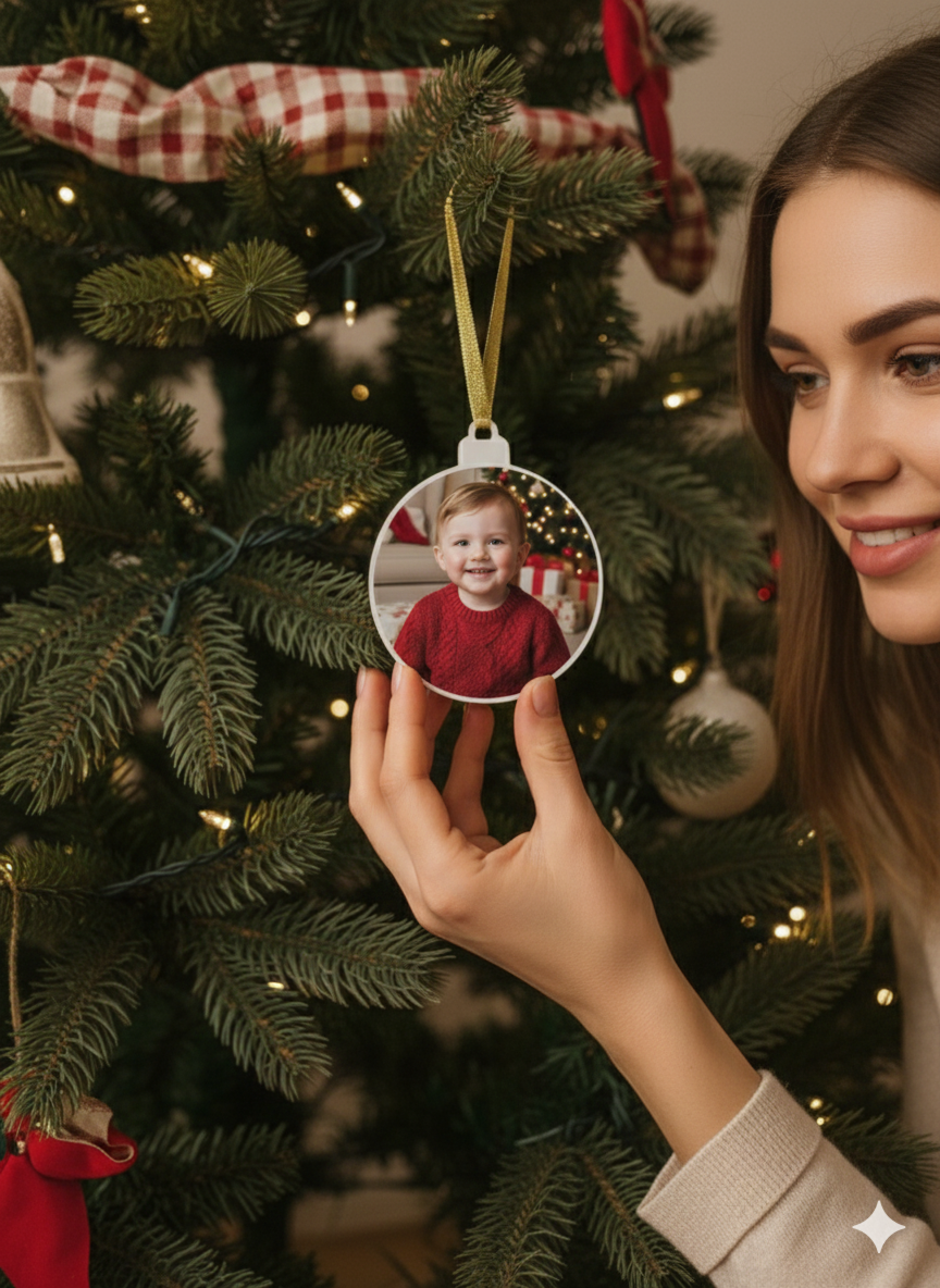 Bola de dmf 3mm chapado en blanco con la foto que mas te guste!! Personaliza tu árbol de navidad, regala detalles bonitos